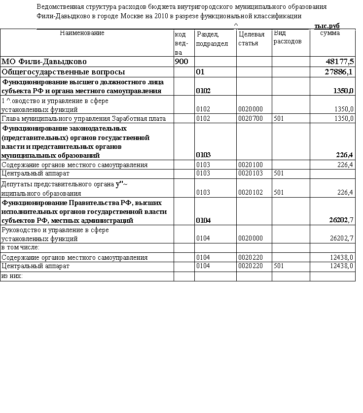 О бюджете внутригородского муниципального образования Фили-Давыдково в городе Москве на 2010 год