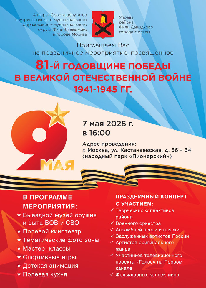 Уважаемые жители внутригородского муниципального образования - муниципального округа Фили-Давыдково в городе Москве!